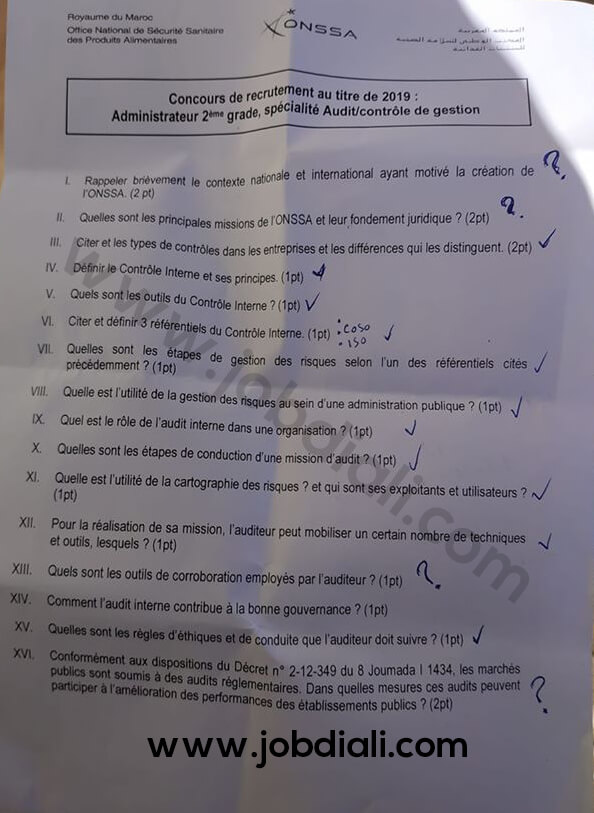<div style="text-align: center;"><span style="font-size: large;"><span style="font-family: inherit;">Office national de </span>sécurité<span style="font-family: inherit;"> sanitaire des produits </span></span><span style="font-family: inherit; font-size: large;">Alimentaires (ONSSA)</span></div> <div style="text-align: center;"><span style="font-family: inherit; font-size: large;">Concours pour le recrutement d’un administrateur de </span><span style="font-family: inherit; font-size: large;">2ème grade</span></div> <div style="text-align: center;"><span style="font-size: large;">Épreuve</span><span style="font-family: inherit; font-size: large;"> </span><span style="font-size: large;">écrite</span></div> <div style="text-align: center;"><span style="font-family: inherit; font-size: large;"><b><span style="color: red;">2019</span></b></span></div> <div style="text-align: center;"><span style="font-family: inherit; font-size: large;"><u><b>Option :</b> <span style="background-color: lime;">Audit / Contrôle de Gestion</span></u></span></div> <div style="text-align: center;"> <div style="clear: both; text-align: center;"><a style="margin-left: 1em; margin-right: 1em;" href="https://1.bp.blogspot.com/-0dWQsywHTSs/XcmBL17xPnI/AAAAAAAAAMc/6zte-7BPbiUKmvV5OjNTbn4ARItA8w0TgCPcBGAYYCw/s1600/onssa-office-national-protection-sanitaire-produits-alimentaires-maroc.jpg"><img style="display: none;" title="Exemple Concours Administrateurs 2ème grade 2019 (Audit / Contrôle de gestion) - ONSSA" src="https://1.bp.blogspot.com/-0dWQsywHTSs/XcmBL17xPnI/AAAAAAAAAMc/6zte-7BPbiUKmvV5OjNTbn4ARItA8w0TgCPcBGAYYCw/s320/onssa-office-national-protection-sanitaire-produits-alimentaires-maroc.jpg" alt="Exemple Concours Administrateurs 2ème grade 2019 (Audit / Contrôle de gestion) - ONSSA" width="320" height="177" border="0" data-original-height="527" data-original-width="952" /></a></div> <div style="clear: both; text-align: center;"><a style="margin-left: 1em; margin-right: 1em;" href="https://1.bp.blogspot.com/-BCDIWFht0Ew/XezteXaCaJI/AAAAAAAAAOI/lIGDJ3ah0TI7Gmge4LGr4q7I5rtCS9HLwCLcBGAsYHQ/s1600/76720913_2117608555007700_1414926518391406592_o.jpg"><img class="aligncenter" title="Exemple Concours Administrateurs 2ème grade 2019 (Audit / Contrôle de gestion) - ONSSA" src="https://1.bp.blogspot.com/-BCDIWFht0Ew/XezteXaCaJI/AAAAAAAAAOI/lIGDJ3ah0TI7Gmge4LGr4q7I5rtCS9HLwCLcBGAsYHQ/s640/76720913_2117608555007700_1414926518391406592_o.jpg" alt="Exemple Concours Administrateurs 2ème grade 2019 (Audit / Contrôle de gestion) - ONSSA" width="466" height="640" border="0" data-original-height="813" data-original-width="594" /></a></div> </div> <!-- wp:block {"ref":851} /-->