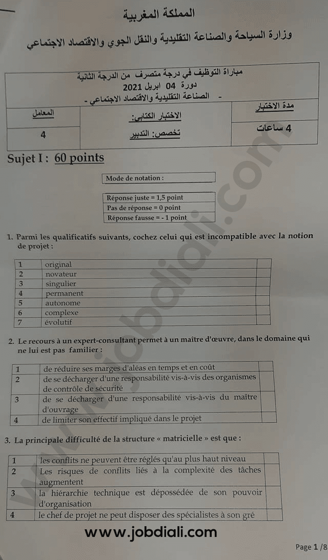 Exemple Concours de recrutement des Administrateurs 2ème grade – Echelle 11