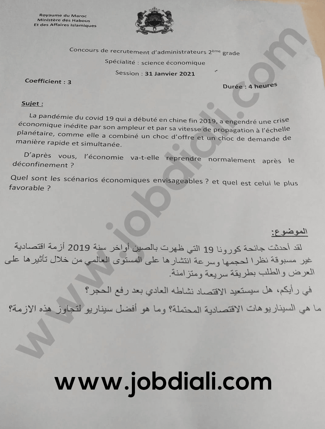 Exemple Concours de Recrutement des Administrateurs 2ème grade
