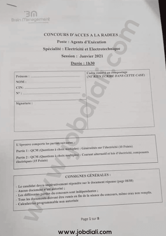 Donné moi exemple concours de agents d’exécution de RADEEF