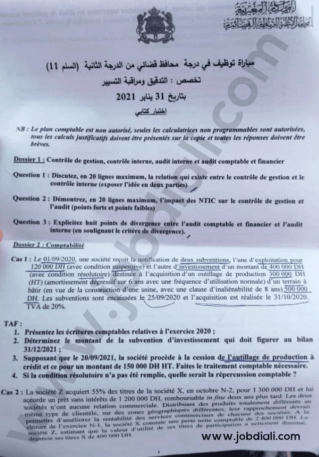 Exemple Concours de Recrutement au conservateur judiciaire 2ème grade ~ Echelle 11