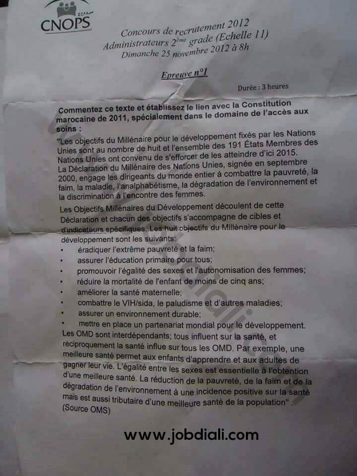 Exemple Concours de Recrutement Administrateurs 2ème grade (échelle 11) 25-11-2012 CNOPS