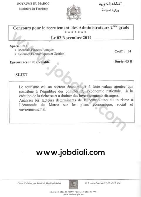 <div style="text-align: center;"><span style="font-size: large;">Exemple Concours de Recrutement des Administrateurs 2ème grade</span></div> <div style="text-align: center;"><span style="font-size: large;"><u>Spécialité:</u> Monnaie Finances Banques / </span><span style="font-size: large;">Sciences Economiques et Gestion</span></div> <div style="text-align: center;"><span style="font-size: large;"><b><span style="color: red;">02-11-2014</span></b></span></div> <div style="text-align: center;"><span style="font-size: large;">Ministère du Tourisme, du Transport Aérien, de l'Artisanat et de l'Economie Sociale</span></div> <div style="clear: both; text-align: center;"><a style="margin-left: 1em; margin-right: 1em;" href="https://1.bp.blogspot.com/-rE9gnKyAH_8/XYuZG0srMwI/AAAAAAAABsI/Vs3Zsv8KATYwN152J4n2UtnrbS9w-2txwCLcBGAsYHQ/s1600/ministere_tourisme.jpg"><img style="display: none;" title="Exemple Concours de Recrutement des Administrateurs 2ème grade 2016 - Ministère du Tourisme" src="https://1.bp.blogspot.com/-rE9gnKyAH_8/XYuZG0srMwI/AAAAAAAABsI/Vs3Zsv8KATYwN152J4n2UtnrbS9w-2txwCLcBGAsYHQ/s320/ministere_tourisme.jpg" alt="Exemple Concours de Recrutement des Administrateurs 2ème grade 2016 - Ministère du Tourisme" width="320" height="207" border="0" data-original-height="328" data-original-width="505" /></a><a style="margin-left: 1em; margin-right: 1em;" href="https://1.bp.blogspot.com/-cLqDd4Jwvzs/XYuWDke8SdI/AAAAAAAABrg/kJZIXHJwDfc5E1d4D0k-q9veehGp6Qk9wCLcBGAsYHQ/s1600/12805689_999821950107946_481393501487973330_n.jpg"><img class="aligncenter" title="Exemple Concours de Recrutement des Administrateurs 2ème grade - Ministère du Tourisme" src="https://1.bp.blogspot.com/-cLqDd4Jwvzs/XYuWDke8SdI/AAAAAAAABrg/kJZIXHJwDfc5E1d4D0k-q9veehGp6Qk9wCLcBGAsYHQ/s1600/12805689_999821950107946_481393501487973330_n.jpg" alt="Exemple Concours de Recrutement des Administrateurs 2ème grade - Ministère du Tourisme" border="0" data-original-height="635" data-original-width="480" /></a></div> <div style="clear: both; text-align: center;"><a style="margin-left: 1em; margin-right: 1em;" href="https://1.bp.blogspot.com/-Y9Nx_RfxOKg/XYuWDP7Z6WI/AAAAAAAABrc/oW2sJ7xGOKEXNnTzxehVggGfxWva4P15QCLcBGAsYHQ/s1600/12799090_999821986774609_2854773322724649426_n.jpg"><img class="aligncenter" title="Exemple Concours de Recrutement des Administrateurs 2ème grade - Ministère du Tourisme" src="https://1.bp.blogspot.com/-Y9Nx_RfxOKg/XYuWDP7Z6WI/AAAAAAAABrc/oW2sJ7xGOKEXNnTzxehVggGfxWva4P15QCLcBGAsYHQ/s1600/12799090_999821986774609_2854773322724649426_n.jpg" alt="Exemple Concours de Recrutement des Administrateurs 2ème grade - Ministère du Tourisme" border="0" data-original-height="669" data-original-width="480" /></a></div> <!-- wp:block {"ref":625} /-->
