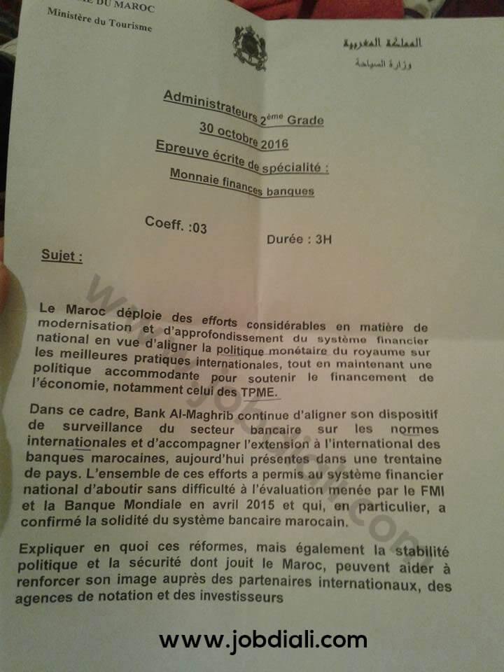 <div style="background-color: white; border: 0px; box-sizing: border-box; margin: 0px; outline: 0px; overflow-wrap: break-word; padding: 0px; text-align: center; vertical-align: baseline;"><span style="border: 0px; box-sizing: border-box; font-style: inherit; font-weight: inherit; margin: 0px; outline: 0px; overflow-wrap: break-word; padding: 0px; vertical-align: baseline;"><span style="font-family: inherit; font-size: large;">Exemple Concours de Recrutement des Administrateurs 2ème grade</span></span></div> <div style="background-color: white; border: 0px; box-sizing: border-box; margin: 0px; outline: 0px; overflow-wrap: break-word; padding: 0px; text-align: center; vertical-align: baseline;"><span style="border: 0px; box-sizing: border-box; font-style: inherit; font-weight: inherit; margin: 0px; outline: 0px; overflow-wrap: break-word; padding: 0px; vertical-align: baseline;"><span style="font-family: inherit; font-size: large;">Spécialité: Monnaie Finances Banques</span></span></div> <div style="background-color: white; border: 0px; box-sizing: border-box; margin: 0px; outline: 0px; overflow-wrap: break-word; padding: 0px; text-align: center; vertical-align: baseline;"><span style="border: 0px; box-sizing: border-box; font-style: inherit; font-weight: inherit; margin: 0px; outline: 0px; overflow-wrap: break-word; padding: 0px; vertical-align: baseline;"><span style="box-sizing: border-box; font-weight: 600;"><span style="border: 0px; box-sizing: border-box; color: red; font-style: inherit; font-weight: inherit; margin: 0px; outline: 0px; overflow-wrap: break-word; padding: 0px; vertical-align: baseline;"><span style="font-family: inherit; font-size: large;">30-10-2016</span></span></span></span></div> <div style="background-color: white; border: 0px; box-sizing: border-box; margin: 0px; outline: 0px; overflow-wrap: break-word; padding: 0px; text-align: center; vertical-align: baseline;"><span style="border: 0px; box-sizing: border-box; font-style: inherit; font-weight: inherit; margin: 0px; outline: 0px; overflow-wrap: break-word; padding: 0px; vertical-align: baseline;"><span style="font-family: inherit; font-size: large;">Ministère du Tourisme, du Transport Aérien, de l'Artisanat et de l'Economie Sociale</span></span></div> <div style="clear: both; text-align: center;"><a style="margin-left: 1em; margin-right: 1em;" href="https://1.bp.blogspot.com/-rE9gnKyAH_8/XYuZG0srMwI/AAAAAAAABsI/Vs3Zsv8KATYwN152J4n2UtnrbS9w-2txwCLcBGAsYHQ/s1600/ministere_tourisme.jpg"><img style="display: none;" title="Exemple Concours de Recrutement des Administrateurs 2ème grade 2016 - Ministère du Tourisme" src="https://1.bp.blogspot.com/-rE9gnKyAH_8/XYuZG0srMwI/AAAAAAAABsI/Vs3Zsv8KATYwN152J4n2UtnrbS9w-2txwCLcBGAsYHQ/s320/ministere_tourisme.jpg" alt="Exemple Concours de Recrutement des Administrateurs 2ème grade 2016 - Ministère du Tourisme" width="320" height="207" border="0" data-original-height="328" data-original-width="505" /></a><a style="margin-left: 1em; margin-right: 1em;" href="https://1.bp.blogspot.com/-0tB1d-jCr4Y/XYuZFgjgrzI/AAAAAAAABsE/XLwznwT4LoYNWEyeW_eiSha9dEEJy_9VwCLcBGAsYHQ/s1600/Exemple%2BConcours%2Bde%2BRecrutement%2Bdes%2BAdministrateurs%2B2%25C3%25A8me%2Bgrade%2B2016%2B2.jpg"><img class="aligncenter" title="Exemple Concours de Recrutement des Administrateurs 2ème grade 2016 - Ministère du Tourisme" src="https://1.bp.blogspot.com/-0tB1d-jCr4Y/XYuZFgjgrzI/AAAAAAAABsE/XLwznwT4LoYNWEyeW_eiSha9dEEJy_9VwCLcBGAsYHQ/s1600/Exemple%2BConcours%2Bde%2BRecrutement%2Bdes%2BAdministrateurs%2B2%25C3%25A8me%2Bgrade%2B2016%2B2.jpg" alt="Exemple Concours de Recrutement des Administrateurs 2ème grade 2016 - Ministère du Tourisme" border="0" data-original-height="960" data-original-width="720" /></a><a style="margin-left: 1em; margin-right: 1em;" href="https://1.bp.blogspot.com/-jrmSvKXj0Pg/XYuZHMYthEI/AAAAAAAABsM/mNmzTvhxtrUX8axp9MufRP_O8yOc7o-4wCLcBGAsYHQ/s1600/Exemple%2BConcours%2Bde%2BRecrutement%2Bdes%2BAdministrateurs%2B2%25C3%25A8me%2Bgrade%2B2016.jpg"><img class="aligncenter" title="Exemple Concours de Recrutement des Administrateurs 2ème grade 2016 - Ministère du Tourisme" src="https://1.bp.blogspot.com/-jrmSvKXj0Pg/XYuZHMYthEI/AAAAAAAABsM/mNmzTvhxtrUX8axp9MufRP_O8yOc7o-4wCLcBGAsYHQ/s1600/Exemple%2BConcours%2Bde%2BRecrutement%2Bdes%2BAdministrateurs%2B2%25C3%25A8me%2Bgrade%2B2016.jpg" alt="Exemple Concours de Recrutement des Administrateurs 2ème grade 2016 - Ministère du Tourisme" border="0" data-original-height="960" data-original-width="720" /></a></div> <!-- wp:block {"ref":625} /-->