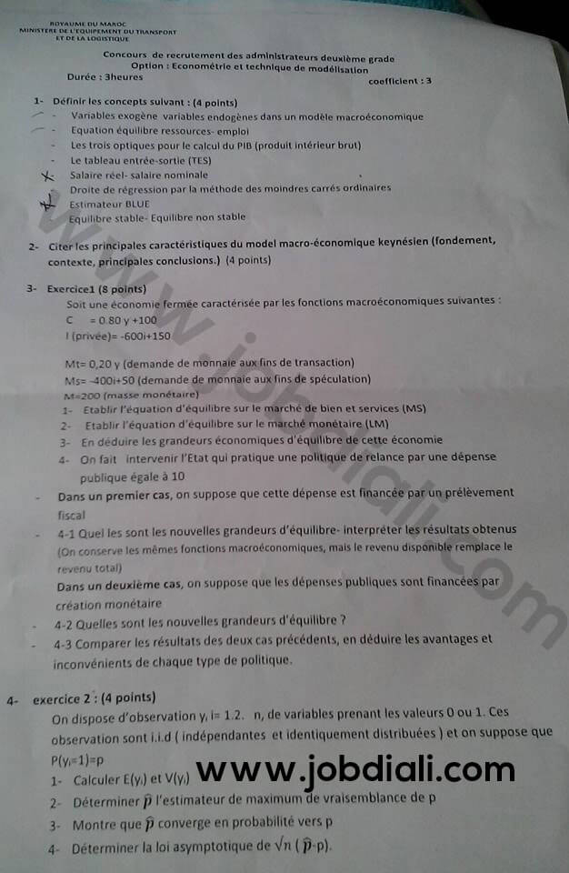 <div style="text-align: center;"><span style="font-family: inherit; font-size: large;">Exemple Concours de Recrutement des Administrateurs 2ème grade</span></div> <div style="text-align: center;"><span style="color: red; font-family: inherit; font-size: large;"><b>19-02-2017</b></span></div> <div style="text-align: center;"> </div> <div style="text-align: center;"><span style="font-size: large;">Option: Économétrie et Technique de Modélisation</span></div> <div style="text-align: center;"><span style="font-family: inherit; font-size: large;">Ministère de l'équipement du transport et de la logistique</span></div> <div style="clear: both; text-align: center;"><a style="margin-left: 1em; margin-right: 1em;" href="https://1.bp.blogspot.com/-zx8EMlKqeog/XYuRIYRq40I/AAAAAAAABqI/7dsWhi-vEIMs-8nmfrTC3uNxm3IokDQHQCLcBGAsYHQ/s1600/minist%25C3%25A8re%2Bde%2Bl%2527equipement%2Bdu%2Btransport%2Bet%2Bde%2Bla%2Blogistique.jpg"><img style="display: none;" title="Exemple Concours de Recrutement des Administrateurs 2ème grade - Ministère de l'équipement, du transport et de la logistique" src="https://1.bp.blogspot.com/-zx8EMlKqeog/XYuRIYRq40I/AAAAAAAABqI/7dsWhi-vEIMs-8nmfrTC3uNxm3IokDQHQCLcBGAsYHQ/s320/minist%25C3%25A8re%2Bde%2Bl%2527equipement%2Bdu%2Btransport%2Bet%2Bde%2Bla%2Blogistique.jpg" alt="Exemple Concours de Recrutement des Administrateurs 2ème grade - Ministère de l'équipement, du transport et de la logistique" width="320" height="181" border="0" data-original-height="471" data-original-width="829" /></a><a style="margin-left: 1em; margin-right: 1em;" href="https://1.bp.blogspot.com/-B5NcNehX_Dw/XYuRGb54VnI/AAAAAAAABqE/quJ9sOUNIngVfY5NspTZLMTuMSqOuDvJgCLcBGAsYHQ/s1600/Exemple%2BConcours%2Bde%2BRecrutement%2Bdes%2BAdministrateurs%2B2%25C3%25A8me%2Bgrade.jpg"><img class="aligncenter" title="Exemple Concours de Recrutement des Administrateurs 2ème grade - Ministère de l'équipement, du transport et de la logistique" src="https://1.bp.blogspot.com/-B5NcNehX_Dw/XYuRGb54VnI/AAAAAAAABqE/quJ9sOUNIngVfY5NspTZLMTuMSqOuDvJgCLcBGAsYHQ/s1600/Exemple%2BConcours%2Bde%2BRecrutement%2Bdes%2BAdministrateurs%2B2%25C3%25A8me%2Bgrade.jpg" alt="Exemple Concours de Recrutement des Administrateurs 2ème grade - Ministère de l'équipement, du transport et de la logistique" border="0" data-original-height="960" data-original-width="720" /></a><a style="margin-left: 1em; margin-right: 1em;" href="https://1.bp.blogspot.com/-aGgVQLf2BQk/XYuRETIEmYI/AAAAAAAABqA/d5j_u0rYav4ucJwhwomieZMJKC_DjPJEACLcBGAsYHQ/s1600/Exemple%2BConcours%2Bde%2BRecrutement%2Bdes%2BAdministrateurs%2B2%25C3%25A8me%2Bgrade%2B2.jpg"><img class="aligncenter" title="Exemple Concours de Recrutement des Administrateurs 2ème grade - Ministère de l'équipement, du transport et de la logistique" src="https://1.bp.blogspot.com/-aGgVQLf2BQk/XYuRETIEmYI/AAAAAAAABqA/d5j_u0rYav4ucJwhwomieZMJKC_DjPJEACLcBGAsYHQ/s1600/Exemple%2BConcours%2Bde%2BRecrutement%2Bdes%2BAdministrateurs%2B2%25C3%25A8me%2Bgrade%2B2.jpg" alt="Exemple Concours de Recrutement des Administrateurs 2ème grade - Ministère de l'équipement, du transport et de la logistique" border="0" data-original-height="960" data-original-width="626" /></a></div> <!-- wp:block {"ref":625} /-->