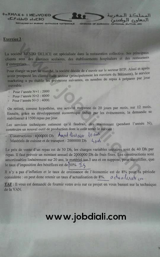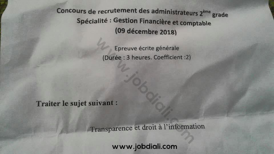 Exemple Concours de Recrutement des Administrateurs 2ème Grade Spécialité : Gestion Financière et Comptable 09-12-2018 Entraide Nationale