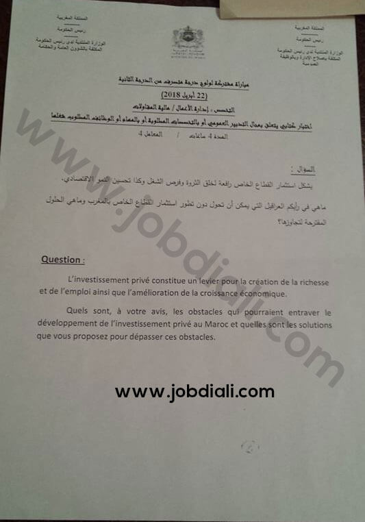 <div style="text-align: center;"><span style="font-family: inherit; font-size: large;">Exemple Concours de Recrutement des Administrateurs 2ème grade</span></div> <div style="text-align: center;"><span style="color: red; font-family: inherit; font-size: large;"><b>22-04-2018</b></span></div> <div style="text-align: center;"><span style="font-family: inherit; font-size: large;"><u>Spécialité :</u> Gestion des Affaires / Finance des Entreprises</span></div> <div style="text-align: center;"><span style="font-size: large;">Ministère de la Réforme de l'Administration et de la Fonction Publique</span></div> <div style="clear: both; text-align: center;"><a style="margin-left: 1em; margin-right: 1em;" href="https://1.bp.blogspot.com/-HiIcg8xgt3s/XYtfTSHGq4I/AAAAAAAABlY/xleoOnZnhMk0b0KIIEY_EdNNYvjoDhwsACEwYBhgL/s1600/minist%25C3%25A8re%2Bde%2Bla%2Br%25C3%25A9forme%2Bde%2Bl%2527administration%2Bet%2Bde%2Bla%2Bfonction%2Bpublique.png"><img style="display: none;" title="Exemple Concours de Recrutement des Administrateurs 2ème grade 2018 - Ministère de la Réforme de l'Administration et de la Fonction Publique" src="https://1.bp.blogspot.com/-HiIcg8xgt3s/XYtfTSHGq4I/AAAAAAAABlY/xleoOnZnhMk0b0KIIEY_EdNNYvjoDhwsACEwYBhgL/s1600/minist%25C3%25A8re%2Bde%2Bla%2Br%25C3%25A9forme%2Bde%2Bl%2527administration%2Bet%2Bde%2Bla%2Bfonction%2Bpublique.png" alt="Exemple Concours de Recrutement des Administrateurs 2ème grade 2018 - Ministère de la Réforme de l'Administration et de la Fonction Publique" border="0" data-original-height="203" data-original-width="248" /></a><a style="margin-left: 1em; margin-right: 1em;" href="https://1.bp.blogspot.com/-p21DXyfH6_E/XYthGhZ7wnI/AAAAAAAABlg/l2DXiUz4A9ssgLau-rCSL2C87dR8oxuWACLcBGAsYHQ/s1600/Exemple%2BConcours%2Bde%2BRecrutement%2Bdes%2BAdministrateurs%2B2%25C3%25A8me%2Bgrade.jpg"><img class="aligncenter" title="Exemple Concours de Recrutement des Administrateurs 2ème grade 2018 - Ministère de la Réforme de l'Administration et de la Fonction Publique" src="https://1.bp.blogspot.com/-p21DXyfH6_E/XYthGhZ7wnI/AAAAAAAABlg/l2DXiUz4A9ssgLau-rCSL2C87dR8oxuWACLcBGAsYHQ/s1600/Exemple%2BConcours%2Bde%2BRecrutement%2Bdes%2BAdministrateurs%2B2%25C3%25A8me%2Bgrade.jpg" alt="Exemple Concours de Recrutement des Administrateurs 2ème grade 2018 - Ministère de la Réforme de l'Administration et de la Fonction Publique" border="0" data-original-height="762" data-original-width="533" /></a></div> <!-- wp:block {"ref":625} /-->