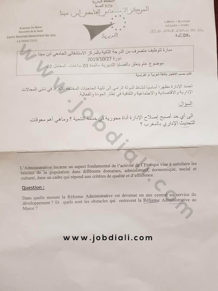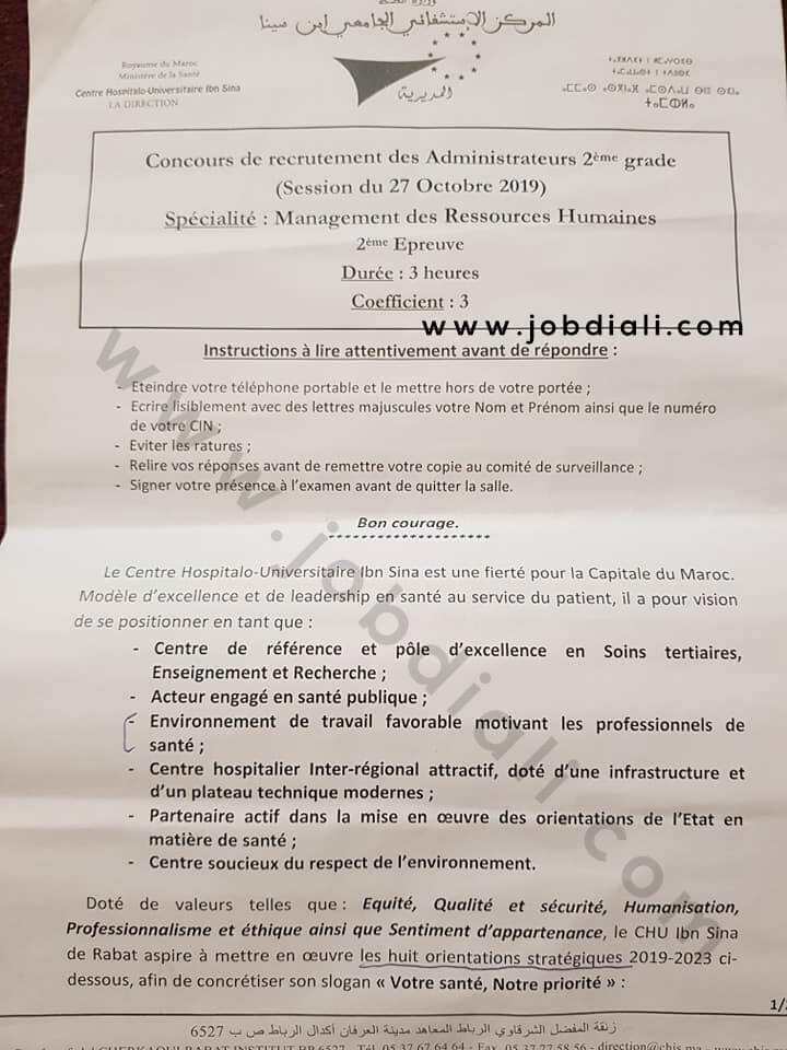 <div style="background-color: white; border: 0px; box-sizing: border-box; margin: 0px; outline: 0px; overflow-wrap: break-word; padding: 0px; text-align: center; vertical-align: baseline;"><span style="font-family: inherit; font-size: large;"><span style="border: 0px; box-sizing: border-box; font-style: inherit; font-weight: inherit; margin: 0px; outline: 0px; overflow-wrap: break-word; padding: 0px; vertical-align: baseline;">Exemple Concours de Recrutement </span><span style="border: 0px; box-sizing: border-box; font-style: inherit; font-weight: inherit; margin: 0px; outline: 0px; overflow-wrap: break-word; padding: 0px; vertical-align: baseline;">des Administrateurs 2ème grade</span></span></div> <div style="background-color: white; border: 0px; box-sizing: border-box; margin: 0px; outline: 0px; overflow-wrap: break-word; padding: 0px; text-align: center; vertical-align: baseline;"><span style="border: 0px; box-sizing: border-box; font-style: inherit; font-weight: inherit; margin: 0px; outline: 0px; overflow-wrap: break-word; padding: 0px; vertical-align: baseline;"><span style="border: 0px; box-sizing: border-box; color: red; font-style: inherit; font-weight: inherit; margin: 0px; outline: 0px; overflow-wrap: break-word; padding: 0px; vertical-align: baseline;"><span style="border: 0px; box-sizing: border-box; font-style: inherit; font-weight: 600; margin: 0px; outline: 0px; overflow-wrap: break-word; padding: 0px; vertical-align: baseline;"><span style="font-family: inherit; font-size: large;">27-10-2019</span></span></span></span></div> <div style="background-color: white; border: 0px; box-sizing: border-box; margin: 0px; outline: 0px; overflow-wrap: break-word; padding: 0px; text-align: center; vertical-align: baseline;"><span style="border: 0px; box-sizing: border-box; font-style: inherit; font-weight: inherit; margin: 0px; outline: 0px; overflow-wrap: break-word; padding: 0px; vertical-align: baseline;"><span style="border: 0px; box-sizing: border-box; color: red; font-style: inherit; font-weight: inherit; margin: 0px; outline: 0px; overflow-wrap: break-word; padding: 0px; vertical-align: baseline;"><span style="border: 0px; box-sizing: border-box; font-style: inherit; font-weight: 600; margin: 0px; outline: 0px; overflow-wrap: break-word; padding: 0px; vertical-align: baseline;"><span style="color: black; font-weight: 400;"><span style="font-family: inherit; font-size: large;">Option: Management des Ressources Humaines</span></span></span></span></span></div> <div style="background-color: white; border: 0px; box-sizing: border-box; margin: 0px; outline: 0px; overflow-wrap: break-word; padding: 0px; text-align: center; vertical-align: baseline;"><span style="border: 0px; box-sizing: border-box; font-style: inherit; font-weight: inherit; margin: 0px; outline: 0px; overflow-wrap: break-word; padding: 0px; vertical-align: baseline;"><span style="font-family: inherit; font-size: large;">Centre Hospitalier Ibn Sina</span></span> <div style="clear: both; text-align: center;"><a style="margin-left: 1em; margin-right: 1em;" href="https://1.bp.blogspot.com/-L7y_oDR7kMQ/Xb2p8sd5dyI/AAAAAAAACao/0CbR6Cjwq1EJ_gNGcyxvg4DCmA9LerywACLcBGAsYHQ/s1600/recrutement%2Bdes%2Badministrateurs%2B2%25C3%25A8me%2Bgrade%2BCHU%2BIbn%2BSina%2B%25283%2529.jpg"><img class="aligncenter" title="Exemple Concours de Recrutement des Administrateurs 2ème grade 2019 - Centre Hospitalier Ibn Sina" src="https://1.bp.blogspot.com/-L7y_oDR7kMQ/Xb2p8sd5dyI/AAAAAAAACao/0CbR6Cjwq1EJ_gNGcyxvg4DCmA9LerywACLcBGAsYHQ/s1600/recrutement%2Bdes%2Badministrateurs%2B2%25C3%25A8me%2Bgrade%2BCHU%2BIbn%2BSina%2B%25283%2529.jpg" alt="Exemple Concours de Recrutement des Administrateurs 2ème grade 2019 - Centre Hospitalier Ibn Sina" border="0" data-original-height="960" data-original-width="720" /></a><a style="margin-left: 1em; margin-right: 1em;" href="https://1.bp.blogspot.com/-DHSu5bv7olE/Xb2p7jkIMHI/AAAAAAAACak/yZUER_Ib7LYgsVV4IfErCHlUwKF21TJtQCLcBGAsYHQ/s1600/recrutement%2Bdes%2Badministrateurs%2B2%25C3%25A8me%2Bgrade%2BCHU%2BIbn%2BSina%2B%25281%2529.jpg"><img class="aligncenter" title="Exemple Concours de Recrutement des Administrateurs 2ème grade 2019 - Centre Hospitalier Ibn Sina" src="https://1.bp.blogspot.com/-DHSu5bv7olE/Xb2p7jkIMHI/AAAAAAAACak/yZUER_Ib7LYgsVV4IfErCHlUwKF21TJtQCLcBGAsYHQ/s1600/recrutement%2Bdes%2Badministrateurs%2B2%25C3%25A8me%2Bgrade%2BCHU%2BIbn%2BSina%2B%25281%2529.jpg" alt="Exemple Concours de Recrutement des Administrateurs 2ème grade 2019 - Centre Hospitalier Ibn Sina" border="0" data-original-height="960" data-original-width="720" /></a><a style="margin-left: 1em; margin-right: 1em;" href="https://1.bp.blogspot.com/-oPLs1vFKym4/Xb2p8wCIfDI/AAAAAAAACas/3lXB8ziHfwg4REy3fcKtqlJSr4bkb2IGgCLcBGAsYHQ/s1600/recrutement%2Bdes%2Badministrateurs%2B2%25C3%25A8me%2Bgrade%2BCHU%2BIbn%2BSina%2B%25282%2529.jpg"><img class="aligncenter" title="Exemple Concours de Recrutement des Administrateurs 2ème grade 2019 - Centre Hospitalier Ibn Sina" src="https://1.bp.blogspot.com/-oPLs1vFKym4/Xb2p8wCIfDI/AAAAAAAACas/3lXB8ziHfwg4REy3fcKtqlJSr4bkb2IGgCLcBGAsYHQ/s1600/recrutement%2Bdes%2Badministrateurs%2B2%25C3%25A8me%2Bgrade%2BCHU%2BIbn%2BSina%2B%25282%2529.jpg" alt="Exemple Concours de Recrutement des Administrateurs 2ème grade 2019 - Centre Hospitalier Ibn Sina" border="0" data-original-height="960" data-original-width="720" /></a></div> </div> <!-- wp:block {"ref":851} /-->