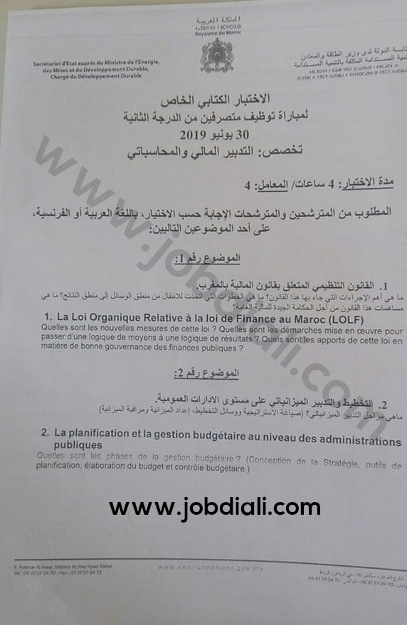 <div style="background-color: white; border: 0px; box-sizing: border-box; margin: 0px; outline: 0px; overflow-wrap: break-word; padding: 0px; text-align: center; vertical-align: baseline;"><span style="border: 0px; box-sizing: border-box; font-style: inherit; font-weight: inherit; margin: 0px; outline: 0px; overflow-wrap: break-word; padding: 0px; vertical-align: baseline;"><span style="font-family: inherit; font-size: large;">Exemple Concours de Recrutement des Administrateurs 2ème grade</span></span></div> <div style="background-color: white; border: 0px; box-sizing: border-box; margin: 0px; outline: 0px; overflow-wrap: break-word; padding: 0px; text-align: center; vertical-align: baseline;"><span style="border: 0px; box-sizing: border-box; color: red; font-style: inherit; font-weight: inherit; margin: 0px; outline: 0px; overflow-wrap: break-word; padding: 0px; vertical-align: baseline;"><span style="box-sizing: border-box; font-weight: 600;"><span style="font-family: inherit; font-size: large;">30-06-2019</span></span></span></div> <div style="background-color: white; border: 0px; box-sizing: border-box; margin: 0px; outline: 0px; overflow-wrap: break-word; padding: 0px; text-align: center; vertical-align: baseline;"><span style="border: 0px; box-sizing: border-box; font-style: inherit; font-weight: inherit; margin: 0px; outline: 0px; overflow-wrap: break-word; padding: 0px; vertical-align: baseline;"><span style="font-family: inherit; font-size: large;">Spécialité: </span></span><span style="font-size: large;">Gestion Financière et Comptable</span></div> <div style="background-color: white; border: 0px; box-sizing: border-box; margin: 0px; outline: 0px; overflow-wrap: break-word; padding: 0px; text-align: center; vertical-align: baseline;"><span style="border: 0px; box-sizing: border-box; font-style: inherit; font-weight: inherit; margin: 0px; outline: 0px; overflow-wrap: break-word; padding: 0px; vertical-align: baseline;"><span style="font-family: inherit; font-size: large;"> </span></span></div> <div style="background-color: white; border: 0px; box-sizing: border-box; margin: 0px; outline: 0px; overflow-wrap: break-word; padding: 0px; text-align: center; vertical-align: baseline;"><span style="border: 0px; box-sizing: border-box; font-style: inherit; font-weight: inherit; margin: 0px; outline: 0px; overflow-wrap: break-word; padding: 0px; vertical-align: baseline;"><span style="font-family: inherit; font-size: large;">Secrétariat d'Etat auprès du Ministre de l'énergie, des mines et du développement durable, chargée du développement durable.</span></span></div> <div style="clear: both; text-align: center;"><a style="margin-left: 1em; margin-right: 1em;" href="https://1.bp.blogspot.com/--E3LTkHQJiM/XYtaMCKhhOI/AAAAAAAABkk/DMRKCh1x8dsNnIMiKW1BP9vi5bKS3nk0wCLcBGAsYHQ/s1600/Secr%25C3%25A9tariat%2Bd%2527Etat%2Baupr%25C3%25A8s%2Bdu%2BMinistre%2Bde%2Bl%2527%25C3%25A9nergie.jpg"><img style="display: none;" title="oncours de Recrutement des Administrateurs 2ème grade 2019 - Secrétariat d'Etat auprès du Ministre de l'énergie" src="https://1.bp.blogspot.com/--E3LTkHQJiM/XYtaMCKhhOI/AAAAAAAABkk/DMRKCh1x8dsNnIMiKW1BP9vi5bKS3nk0wCLcBGAsYHQ/s320/Secr%25C3%25A9tariat%2Bd%2527Etat%2Baupr%25C3%25A8s%2Bdu%2BMinistre%2Bde%2Bl%2527%25C3%25A9nergie.jpg" alt="oncours de Recrutement des Administrateurs 2ème grade 2019 - Secrétariat d'Etat auprès du Ministre de l'énergie" width="320" height="138" border="0" data-original-height="148" data-original-width="341" /></a><a style="margin-left: 1em; margin-right: 1em;" href="https://1.bp.blogspot.com/-6vyRTMdwvwU/XYtYYx_fuUI/AAAAAAAABkU/sItJUVOs4sEmdV5gDQh_UrVBq2dTsiodgCEwYBhgL/s1600/Exemple%2BConcours%2Bde%2BRecrutement%2Bdes%2BAdministrateurs%2B2%25C3%25A8me%2Bgrade%2B2019%2Bg%25C3%25A9n%25C3%25A9rale.jpg"><img class="aligncenter" title="oncours de Recrutement des Administrateurs 2ème grade 2019 - Secrétariat d'Etat auprès du Ministre de l'énergie" src="https://1.bp.blogspot.com/-6vyRTMdwvwU/XYtYYx_fuUI/AAAAAAAABkU/sItJUVOs4sEmdV5gDQh_UrVBq2dTsiodgCEwYBhgL/s1600/Exemple%2BConcours%2Bde%2BRecrutement%2Bdes%2BAdministrateurs%2B2%25C3%25A8me%2Bgrade%2B2019%2Bg%25C3%25A9n%25C3%25A9rale.jpg" alt="oncours de Recrutement des Administrateurs 2ème grade 2019 - Secrétariat d'Etat auprès du Ministre de l'énergie" border="0" data-original-height="909" data-original-width="572" /></a><a style="margin-left: 1em; margin-right: 1em;" href="https://1.bp.blogspot.com/-gGIGLiZQtLE/XYtaL-jbIjI/AAAAAAAABkg/Twsz-CbPy9EfcOPdmYPg4wV8UC4V6_iggCLcBGAsYHQ/s1600/Exemple%2BConcours%2Bde%2BRecrutement%2Bdes%2BAdministrateurs%2B2%25C3%25A8me%2Bgrade%2B2019.jpg"><img class="aligncenter" title="oncours de Recrutement des Administrateurs 2ème grade 2019 - Secrétariat d'Etat auprès du Ministre de l'énergie" src="https://1.bp.blogspot.com/-gGIGLiZQtLE/XYtaL-jbIjI/AAAAAAAABkg/Twsz-CbPy9EfcOPdmYPg4wV8UC4V6_iggCLcBGAsYHQ/s1600/Exemple%2BConcours%2Bde%2BRecrutement%2Bdes%2BAdministrateurs%2B2%25C3%25A8me%2Bgrade%2B2019.jpg" alt="oncours de Recrutement des Administrateurs 2ème grade 2019 - Secrétariat d'Etat auprès du Ministre de l'énergie" border="0" data-original-height="879" data-original-width="572" /></a></div> <!-- wp:block {"ref":625} /-->