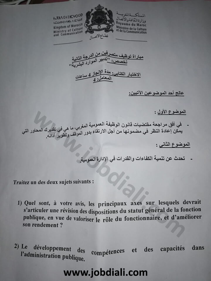 <div style="text-align: center;"><span style="font-family: inherit; font-size: large;">Exemple Concours de Recrutement des Administrateurs 2ème grade</span></div> <div style="text-align: center;"><span style="color: red; font-family: inherit; font-size: large;"><b>29-09-2019</b></span><br /><span style="font-size: large;"><u>Spécialité:</u> Gestion des Ressources Humaines</span></div> <div style="text-align: center;"><span style="font-family: inherit; font-size: large;">Ministère de la culture et de la communication Département de la Communication<br /></span></div> <div style="clear: both; text-align: center;"><a style="margin-left: 1em; margin-right: 1em;" href="https://1.bp.blogspot.com/-qPTSMDnT_fo/XYqVPx4E9XI/AAAAAAAABec/qX6aiqw8Dikk-maru4h80OYSOFDFhOALQCLcBGAsYHQ/s1600/Minist%25C3%25A8re%2Bde%2Bla%2BCommunication.png"><img style="display: none;" title="Exemple Concours de Recrutement des Administrateurs 2ème grade 2019 (Gestion des Ressources Humaines) - Ministère de la communication" src="https://1.bp.blogspot.com/-qPTSMDnT_fo/XYqVPx4E9XI/AAAAAAAABec/qX6aiqw8Dikk-maru4h80OYSOFDFhOALQCLcBGAsYHQ/s1600/Minist%25C3%25A8re%2Bde%2Bla%2BCommunication.png" alt="Exemple Concours de Recrutement des Administrateurs 2ème grade 2019 (Gestion des Ressources Humaines) - Ministère de la communication" border="0" data-original-height="226" data-original-width="223" /></a><a style="margin-left: 1em; margin-right: 1em;" href="https://1.bp.blogspot.com/-gzjRWUgfvks/XZKEnMWbG9I/AAAAAAAAAK4/P4u6GBZ-l0IEzKrMmVEbpAx7_eMtL0nkACLcBGAsYHQ/s1600/Exemple%2BConcours%2Bde%2BRecrutement%2Bdes%2BAdministrateurs%2B2%25C3%25A8me%2Bgrade%2B2019%2B-%2BMinist%25C3%25A8re%2Bde%2Bla%2Bcommunication.jpg"><img class="aligncenter" title="Exemple Concours de Recrutement des Administrateurs 2ème grade 2019 (Gestion des Ressources Humaines) - Ministère de la communication" src="https://1.bp.blogspot.com/-gzjRWUgfvks/XZKEnMWbG9I/AAAAAAAAAK4/P4u6GBZ-l0IEzKrMmVEbpAx7_eMtL0nkACLcBGAsYHQ/s1600/Exemple%2BConcours%2Bde%2BRecrutement%2Bdes%2BAdministrateurs%2B2%25C3%25A8me%2Bgrade%2B2019%2B-%2BMinist%25C3%25A8re%2Bde%2Bla%2Bcommunication.jpg" alt="Exemple Concours de Recrutement des Administrateurs 2ème grade 2019 (Gestion des Ressources Humaines) - Ministère de la communication" border="0" data-original-height="960" data-original-width="720" /></a></div> <!-- wp:block {"ref":851} /-->