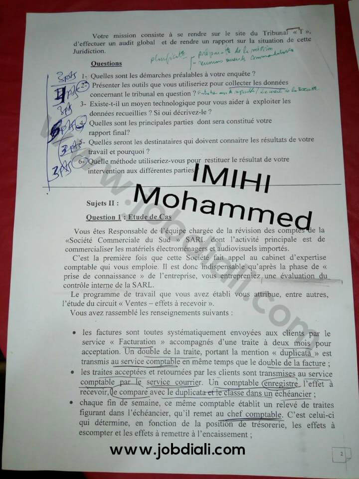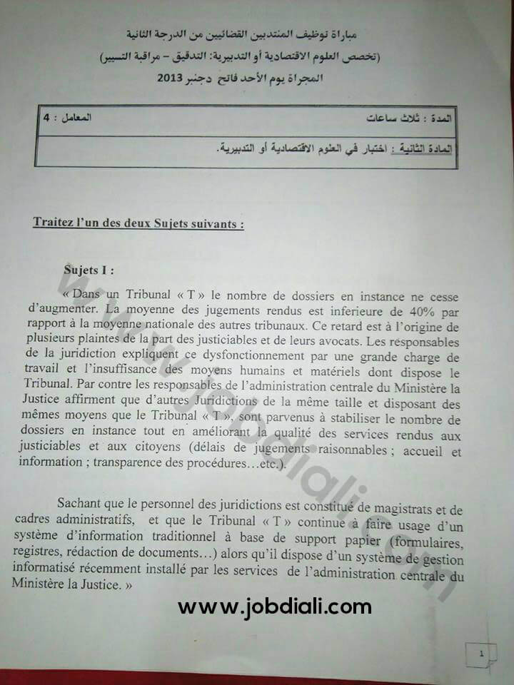 Exemple Concours de Recrutement des Délégués Judiciaires 2ème grade 01-01-2013 Spécialité: Audit et Contrôle de Gestion Ministère de la justice .الموضوع العام: دور التدقيق ومراقبة التسييرفي تخليق الإدارة وتحسين جودة الخدمات