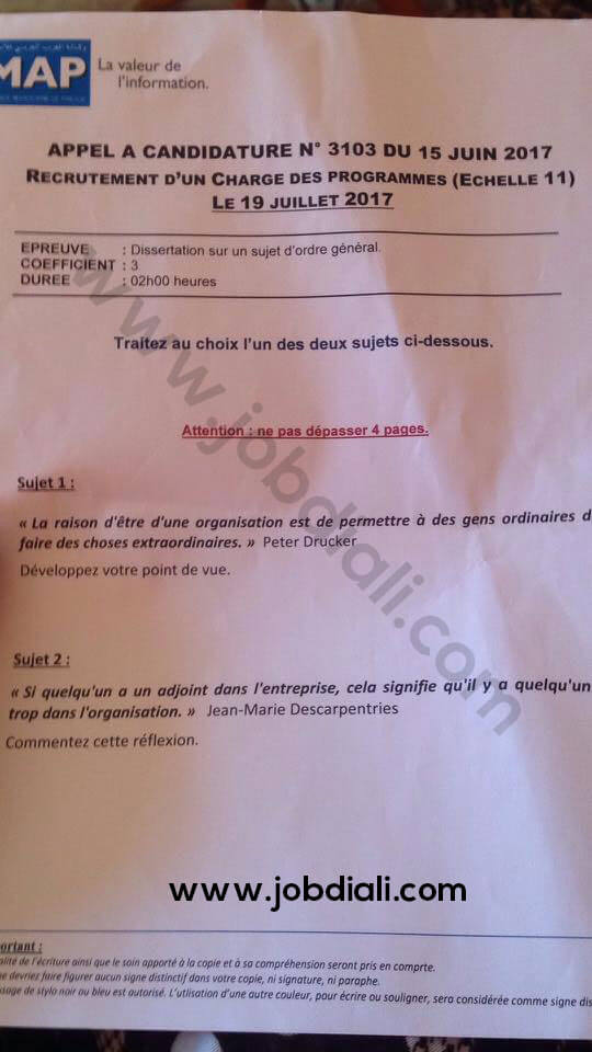 <div style="background-color: white; border: 0px; box-sizing: border-box; margin: 0px; outline: 0px; overflow-wrap: break-word; padding: 0px; text-align: center; vertical-align: baseline;"><span style="border: 0px; box-sizing: border-box; font-family: inherit; font-size: large; font-style: inherit; font-weight: inherit; margin: 0px; outline: 0px; overflow-wrap: break-word; padding: 0px; vertical-align: baseline;">Exemple Concours de Recrutement d'un Charge des Programmes (échelle 11)</span></div> <div style="background-color: white; border: 0px; box-sizing: border-box; margin: 0px; outline: 0px; overflow-wrap: break-word; padding: 0px; text-align: center; vertical-align: baseline;"><span style="border: 0px; box-sizing: border-box; font-style: inherit; font-weight: inherit; margin: 0px; outline: 0px; overflow-wrap: break-word; padding: 0px; vertical-align: baseline;"><span style="border: 0px; box-sizing: border-box; color: red; font-style: inherit; font-weight: inherit; margin: 0px; outline: 0px; overflow-wrap: break-word; padding: 0px; vertical-align: baseline;"><span style="box-sizing: border-box; font-family: inherit; font-size: large; font-weight: 600;">le 19 juillet 2017</span></span></span></div> <div style="background-color: white; border: 0px; box-sizing: border-box; margin: 0px; outline: 0px; overflow-wrap: break-word; padding: 0px; text-align: center; vertical-align: baseline;"><span style="border: 0px; box-sizing: border-box; font-family: inherit; font-size: large; font-style: inherit; font-weight: inherit; margin: 0px; outline: 0px; overflow-wrap: break-word; padding: 0px; vertical-align: baseline;">l'Agence Maghreb Arabe Presse</span></div> <div style="clear: both; text-align: center;"><a style="margin-left: 1em; margin-right: 1em;" href="https://1.bp.blogspot.com/-y8_0SRSff_Q/XYqEloA5ppI/AAAAAAAABc8/yg3VosCZVDA5GVdyV22TZ9GJNQ7qAfDSQCEwYBhgL/s1600/map.png"><img style="display: none;" title="Exemple Concours de Recrutement d'un Charge des Programmes (échelle 11) 2017 - MAP" src="https://1.bp.blogspot.com/-y8_0SRSff_Q/XYqEloA5ppI/AAAAAAAABc8/yg3VosCZVDA5GVdyV22TZ9GJNQ7qAfDSQCEwYBhgL/s320/map.png" alt="Exemple Concours de Recrutement d'un Charge des Programmes (échelle 11) 2017 - MAP" width="320" height="196" border="0" data-original-height="628" data-original-width="1024" /></a><a style="margin-left: 1em; margin-right: 1em;" href="https://1.bp.blogspot.com/-81Pf9sJEXVU/XYqHmw3rOZI/AAAAAAAABdQ/cs-F2IsP7Ag60iM6WmnTD5eFU0QsAjQewCLcBGAsYHQ/s1600/Exemple%2BConcours%2Bde%2BRecrutement%2Bd%2527un%2Bcharge%2Bdes%2Bprogrammes%2B%2528%25C3%25A9chelle%2B11%2529%2B2017.jpg"><img class="aligncenter" title="Exemple Concours de Recrutement d'un Charge des Programmes (échelle 11) 2017 - MAP" src="https://1.bp.blogspot.com/-81Pf9sJEXVU/XYqHmw3rOZI/AAAAAAAABdQ/cs-F2IsP7Ag60iM6WmnTD5eFU0QsAjQewCLcBGAsYHQ/s1600/Exemple%2BConcours%2Bde%2BRecrutement%2Bd%2527un%2Bcharge%2Bdes%2Bprogrammes%2B%2528%25C3%25A9chelle%2B11%2529%2B2017.jpg" alt="Exemple Concours de Recrutement d'un Charge des Programmes (échelle 11) 2017 - MAP" border="0" data-original-height="960" data-original-width="540" /></a></div> <!-- wp:block {"ref":625} /-->