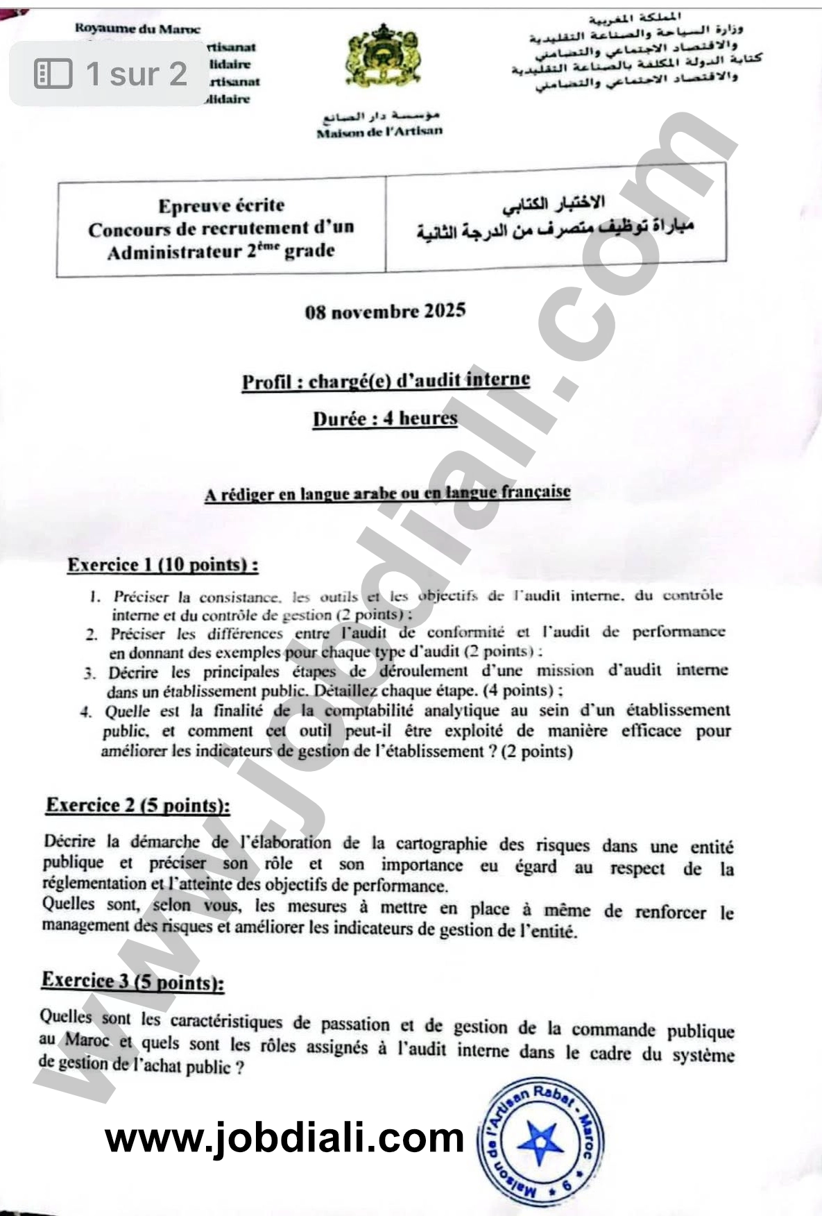 Exemple Concours des Administrateurs 2ème grade 2025 – Maison de l’Artisan