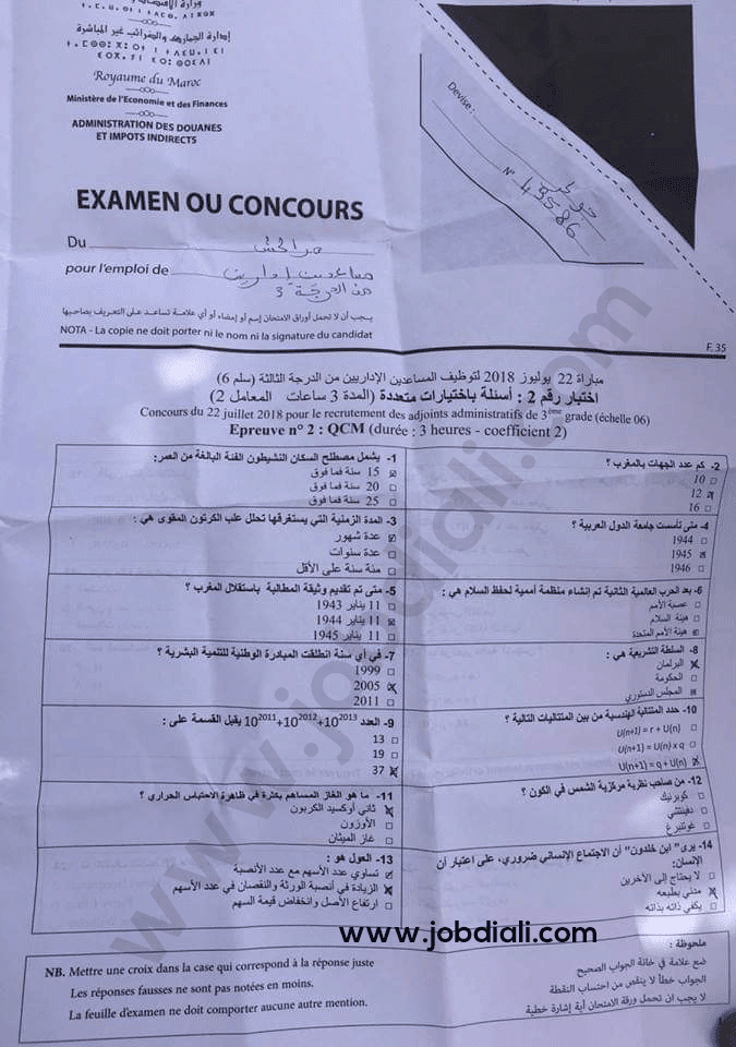 Exemple Concours de Recrutement des Administrateurs 3ème grade ~ Echelle 6