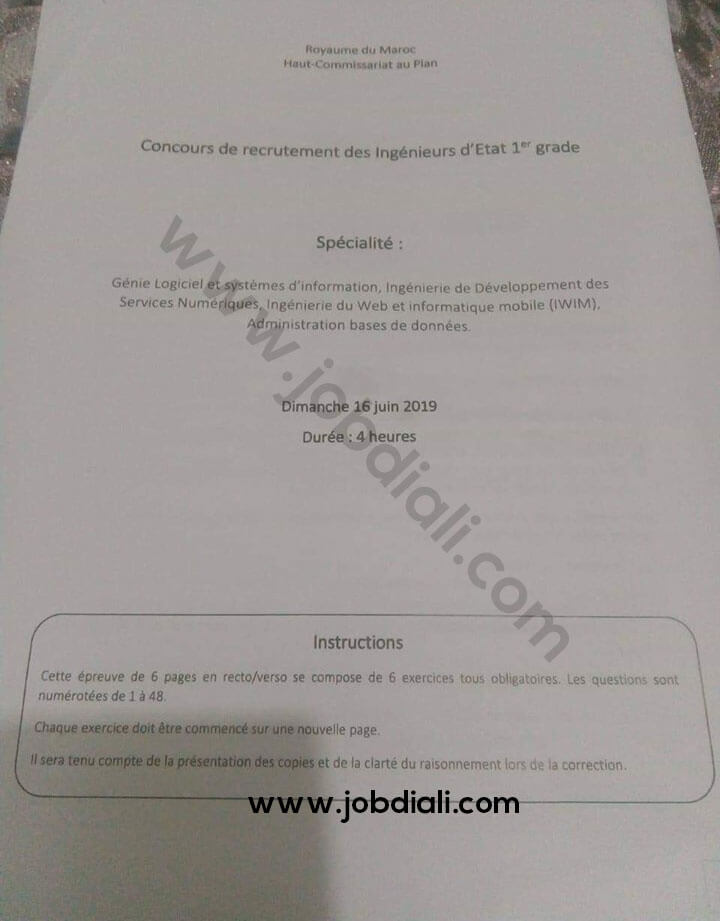 Exemple Concours de Recrutement d’Ingénieurs d'Etat de 1er grade 16-06-2019 Haut Commissariat au Plan