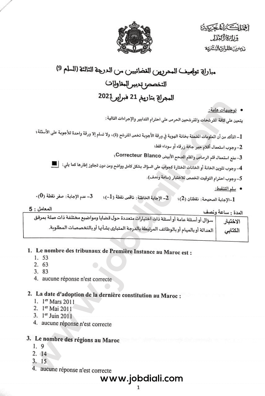 Exemple Concours de Recrutement Rédacteur Judiciaire 3ème grade ~ Echelle 9